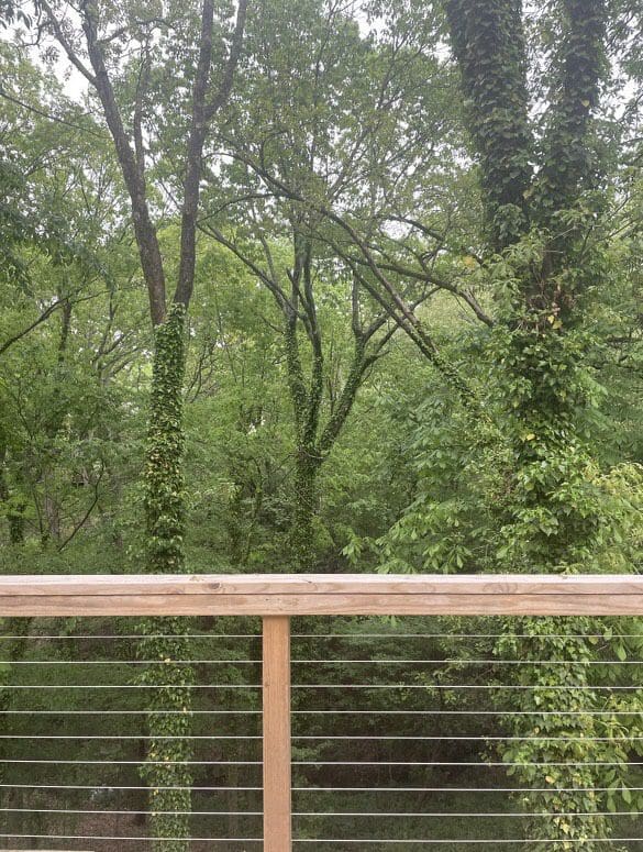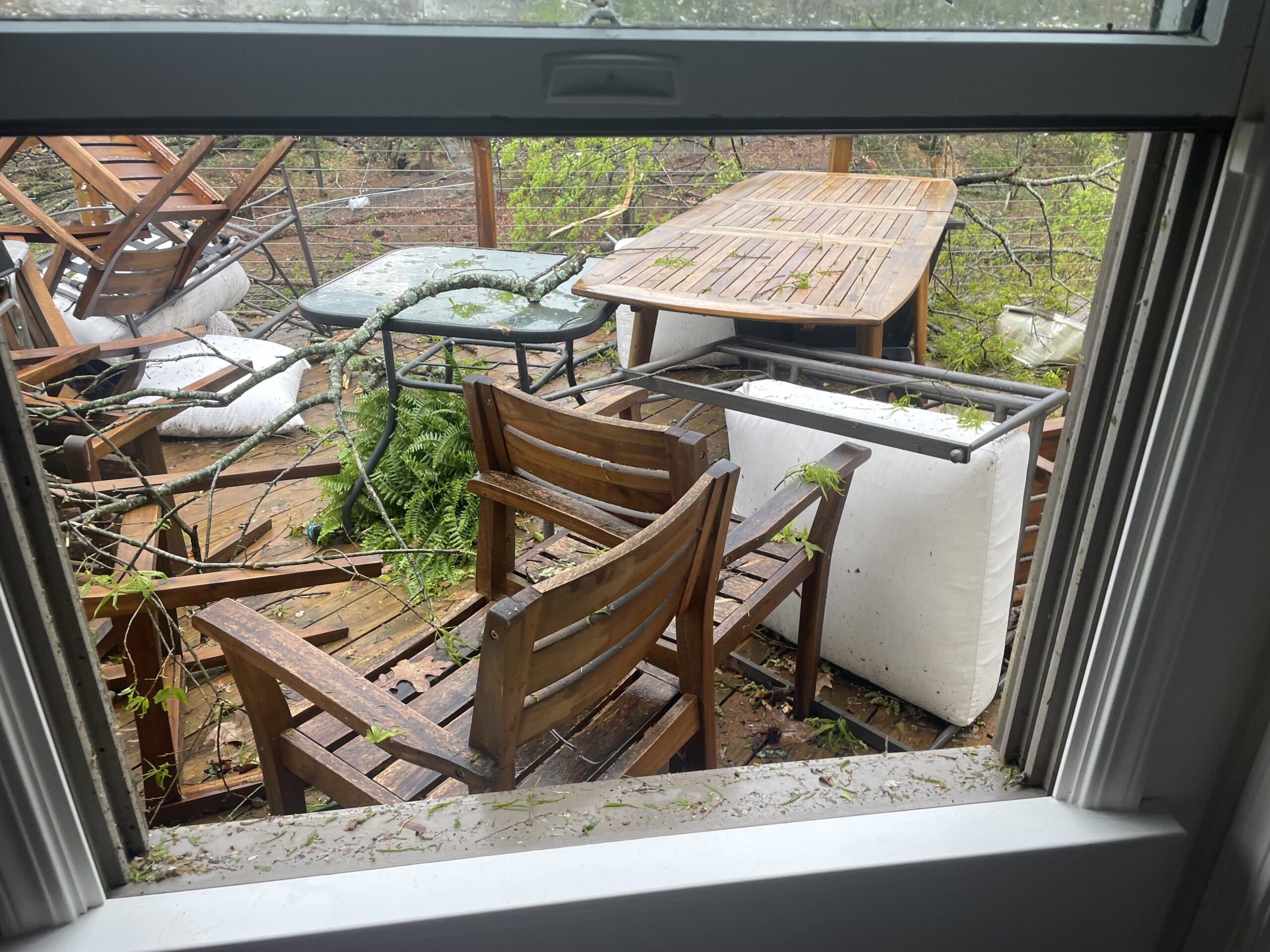 Annsley described their back deck pre-tornado as “a peaceful sanctuary.” Annsley and Kippin keep it regularly adorned with several potted plants and vibrant flowers. It sits above a steep dropoff, and there were so many lush trees densely packed together that one couldn’t see any of the houses that were across the ravine.
